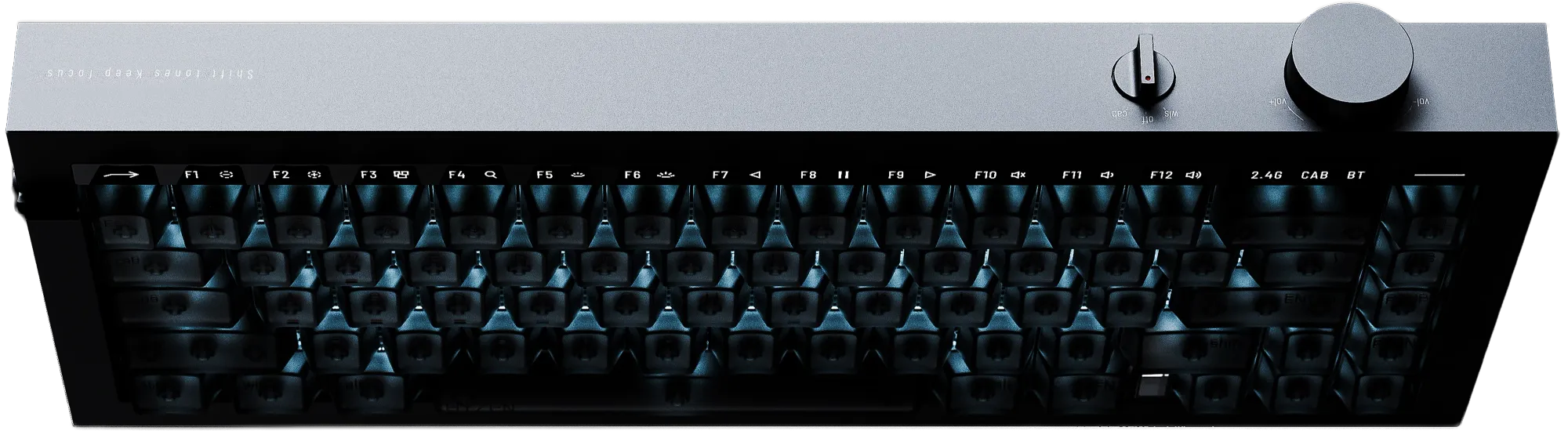 Uno degli aspetti più particolari riguarda il layout. Hyzen è una 65%, ma cerca di aggirare uno dei limiti classici di questo formato, cioè l’assenza della fila funzione dedicata. Lofree ha infatti integrato una manopola laterale che consente di passare dalla riga numerica alla modalità F-row, con indicatori LED superiori pensati per mostrare in modo immediato quando i tasti sono stati rimappati. Accanto a questa soluzione c’è anche una seconda manopola, dedicata al controllo audio e alla gestione delle modalità d’uso.