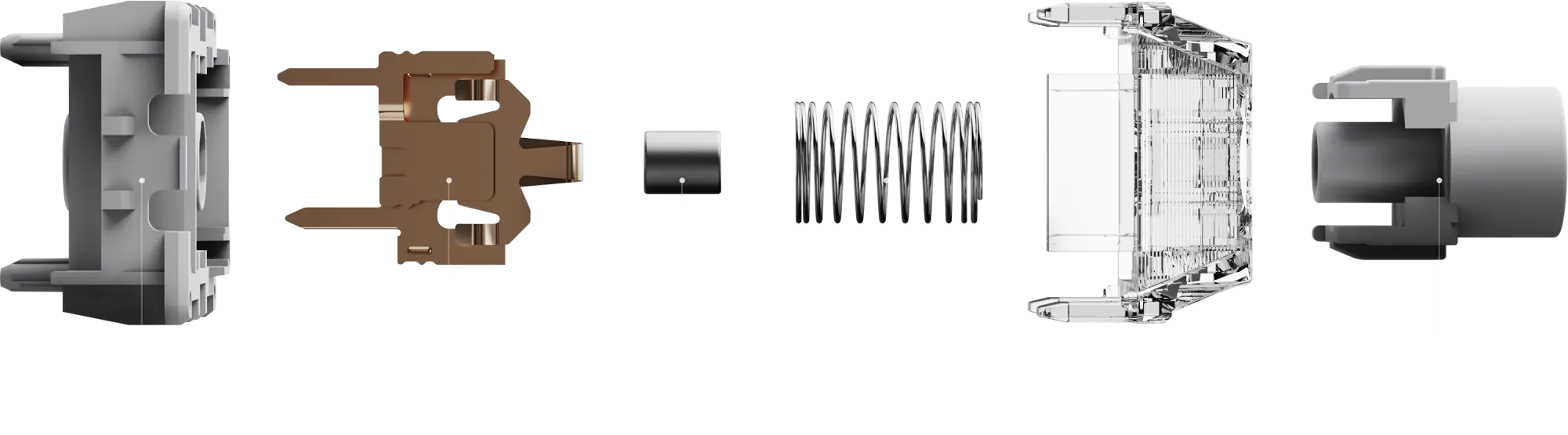 Il vero elemento di richiamo, però, è la tecnologia degli switch. Lofree parla di una nuova architettura ibrida chiamata Nexus, sviluppata insieme a Kailh, che unisce una struttura meccanica tradizionale con un sensore magnetico. L’obiettivo è offrire la rapidità e la regolazione tipiche degli switch magnetici, mantenendo però una risposta tattile più vicina a quella di una tastiera meccanica classica. Tra i dettagli comunicati troviamo attivazione regolabile fino a 0,01 mm, switch hot-swappable e una PCB TMR compatibile sia con switch magnetici sia con switch meccanici standard.