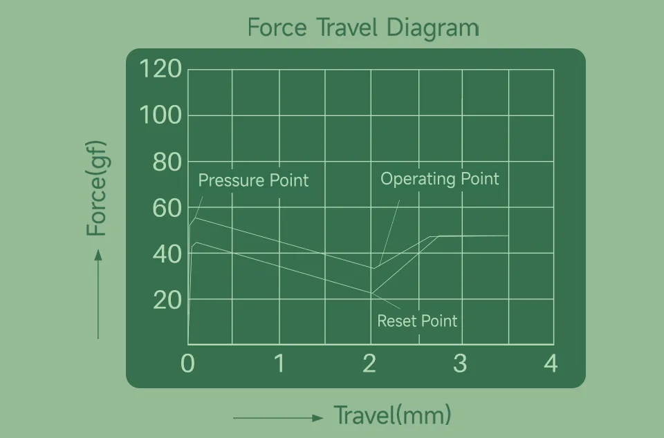 Il grafico della forza e della corsa aiuta a visualizzare come si comportano i Cilantro durante la pressione del tasto, mostra quanta forza serve per far scattare lo switch e come questa cambia lungo tutta la corsa.
