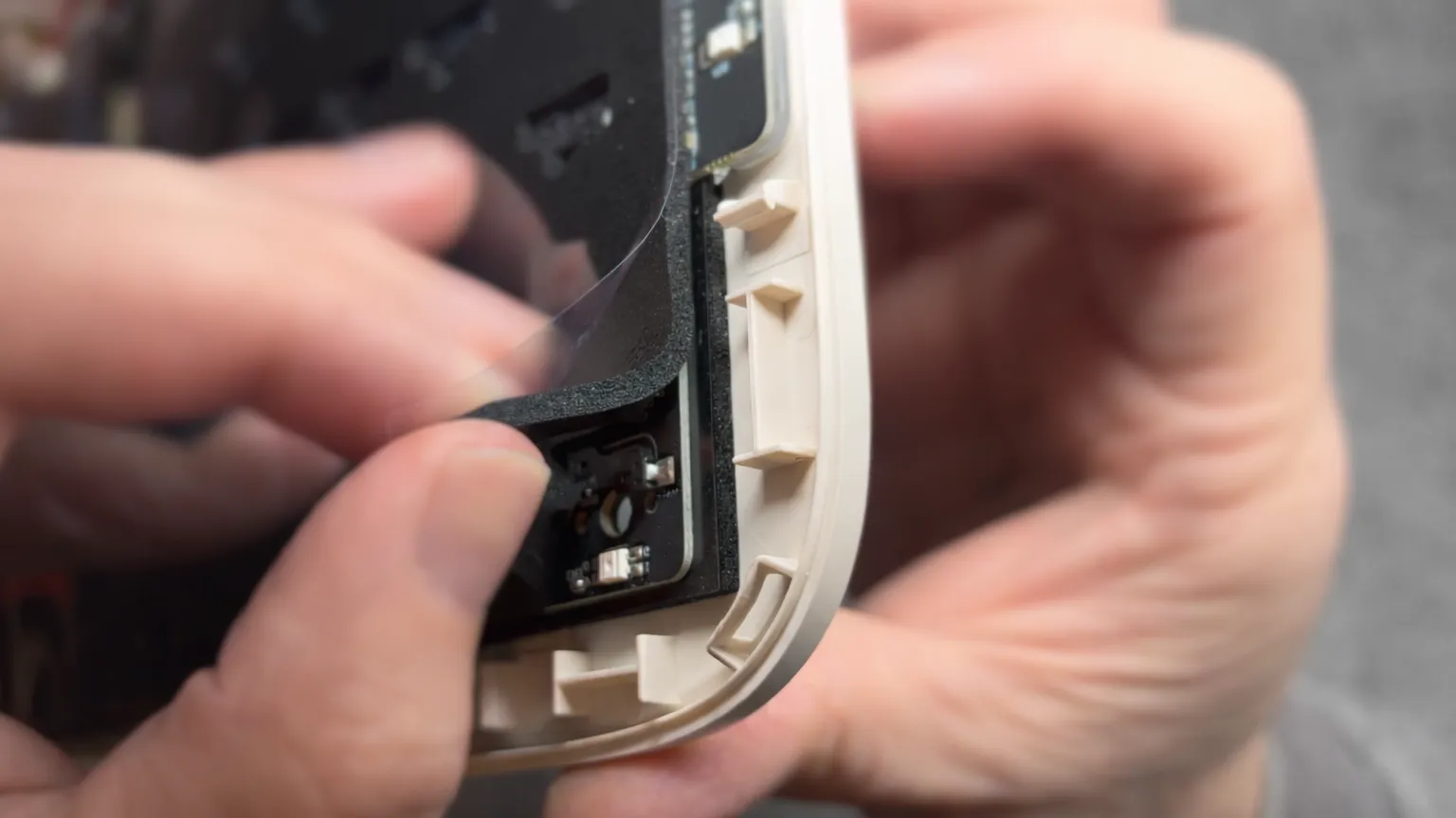 Questa targhetta non è fissata magneticamente, come inizialmente avevo sperato, ma incollata direttamente alla scocca con della colla, rendendo l’accesso alla parte interna decisamente meno immediato di quanto ci si aspetterebbe da una tastiera meccanica. Per riuscire a rimuoverla è stato necessario intervenire con molta cautela, utilizzando strumenti sottili, un’operazione che personalmente non mi sentirei di consigliare all’utente medio. Ed è proprio qui che emerge uno dei limiti più evidenti della Glyph dal punto di vista della personalizzazione: trattandosi a tutti gli effetti di una tastiera meccanica, nel tempo potrebbe nascere l’esigenza di accedere all’interno per interventi comuni come il cambio degli stabilizzatori, eventuali modifiche agli strati interni per personalizzare la resa sonora o la sostituzione delle batterie. In questo caso, però, l’accesso risulta piuttosto complicato, limitando una delle libertà che molti appassionati di tastiere meccaniche danno ormai per scontata.