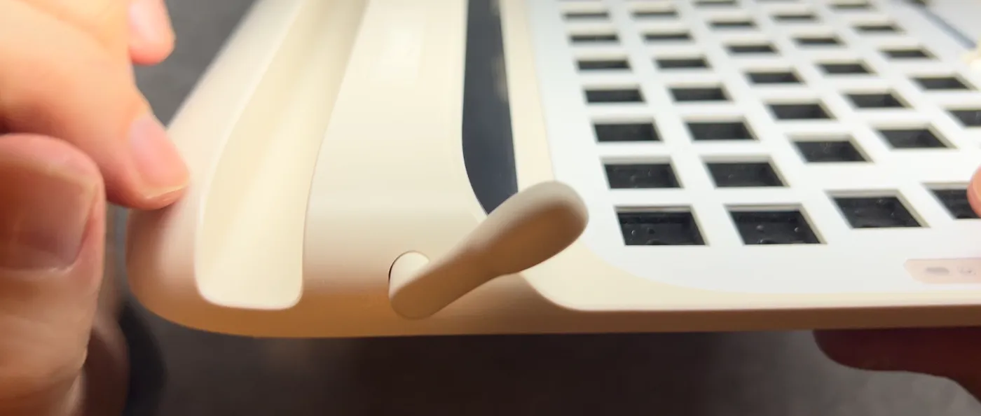 Dal punto di vista ergonomico, questa è una tastiera che richiede inevitabilmente qualche attenzione in più rispetto a una classica 75%, soprattutto a causa del suo design e dimensioni, che si fanno percepire immediatamente. L’altezza complessiva è infatti importante e incide in modo diretto sulla posizione delle mani: dalla base fino alla superficie dei keycaps si superano abbondantemente i quattro centimetri, un valore che porta a sollevare maggiormente i polsi e che rende evidente come questa tastiera non sia pensata per un approccio “neutro” senza alcun poggiapolsi.
