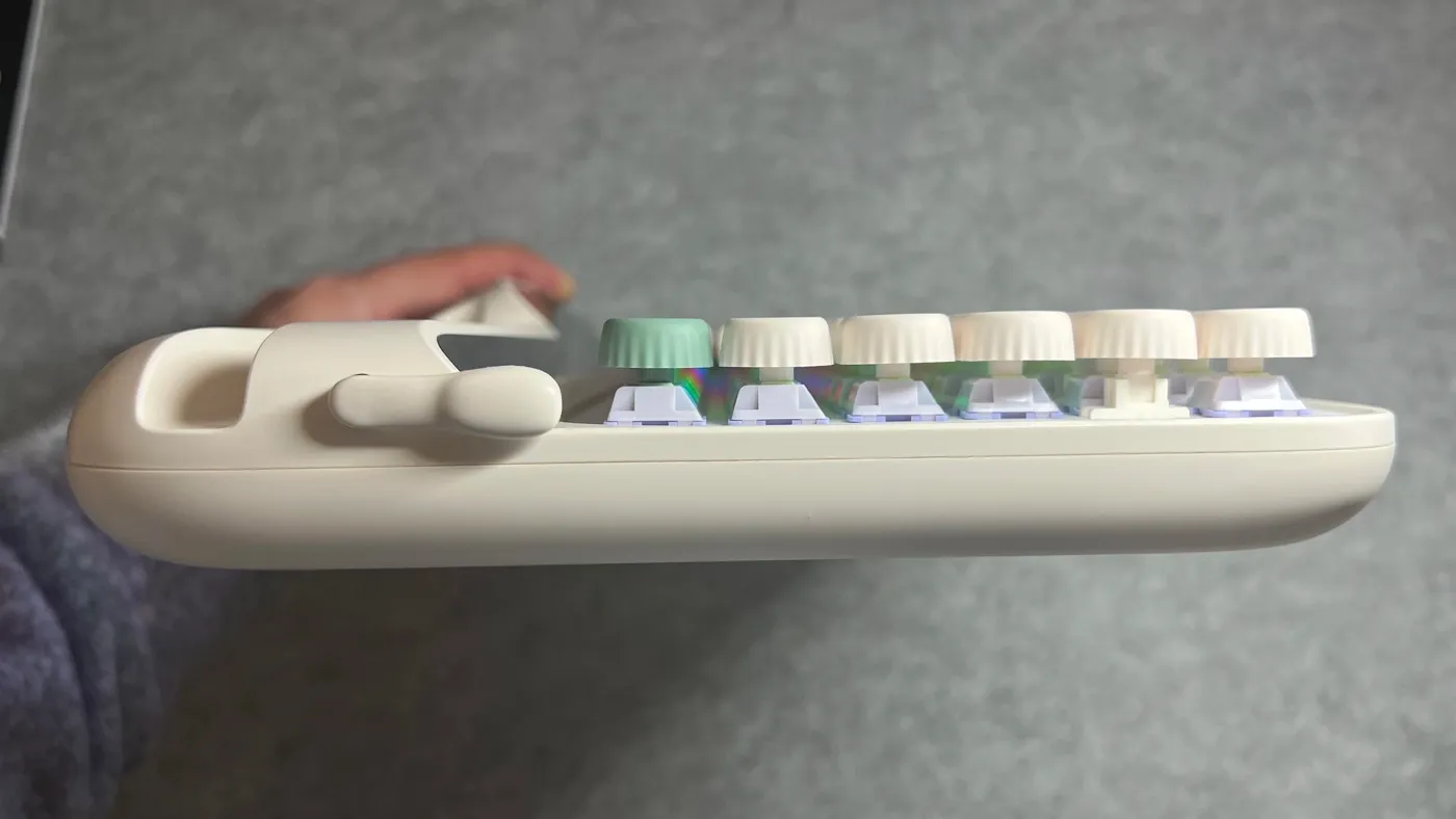 Nell’utilizzo reale, però, questa soluzione mostra anche qualche limite: durante le mie prove mi è capitato più volte che la leva restasse in una posizione non perfettamente neutra, continuando ad attivare la funzione associata, con il risultato di cancellare testo o andare a capo in modo ripetuto e involontario. In un’occasione mi sono ritrovato a perdere diverse righe di testo prima di accorgermi del problema, un comportamento che, almeno nella mia esperienza, può risultare fastidioso e potenzialmente problematico durante la scrittura. Resta una caratteristica affascinante e coerente con il concept della tastiera, ma è anche uno di quegli elementi che richiedono un po’ di attenzione in più e che potrebbero non essere adatti a tutti, soprattutto a chi scrive molto e in modo continuativo.
