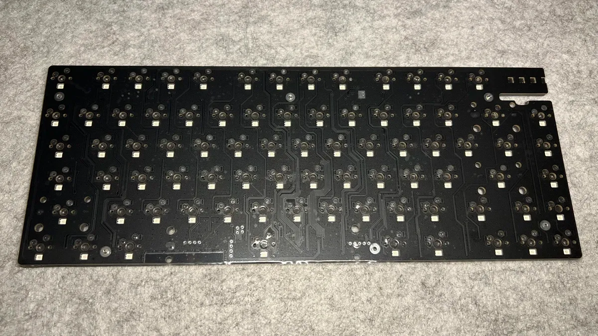 Il risultato è un movimento controllato del gruppo plate + PCB, che contribuisce a rendere la digitazione più morbida e meno rigida rispetto a soluzioni tradizionali. Il plate in policarbonato è inoltre dotato di cut flex, tagli studiati per aumentare la flessibilità durante la pressione dei tasti. È importante però sottolineare che il PCB non presenta cut flex, la sensazione di elasticità percepita non deriva quindi da una flessione diretta del circuito stampato, ma principalmente dal plate, dal sistema gasket e dalla presenza delle molle all’interno della struttura.