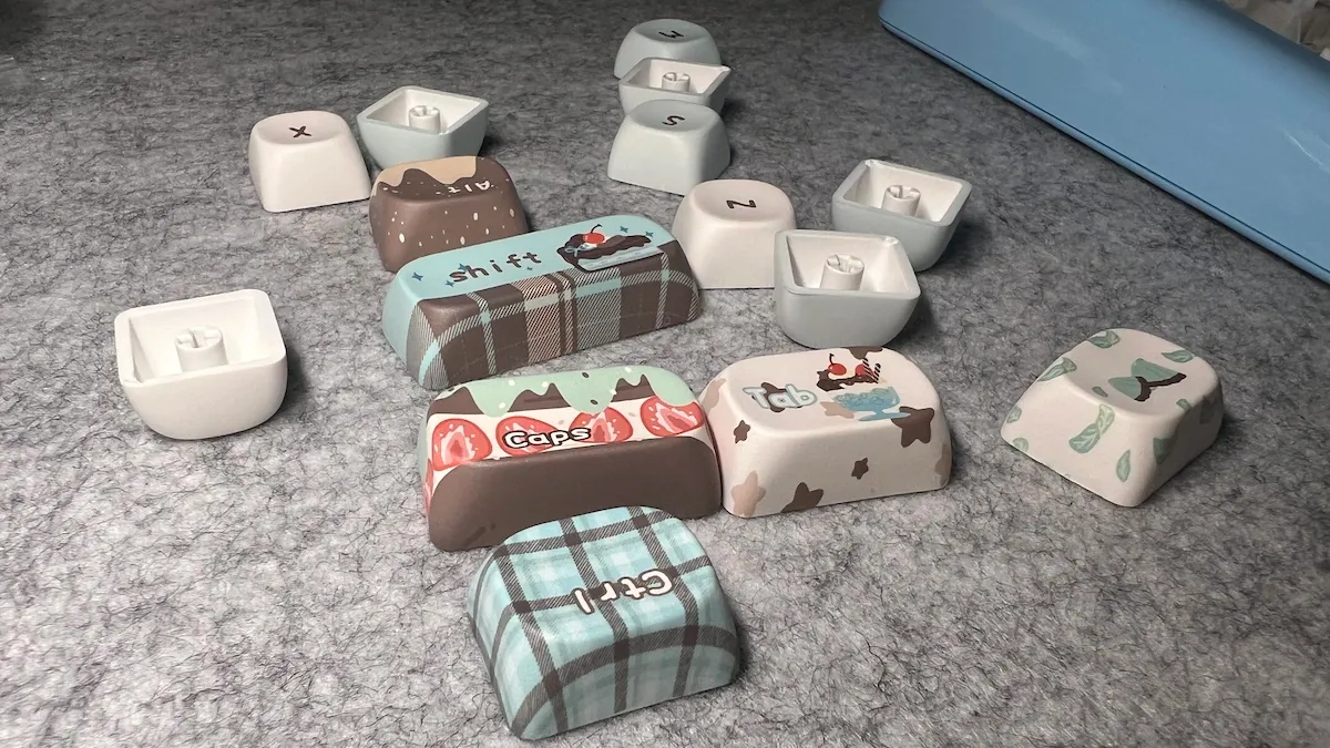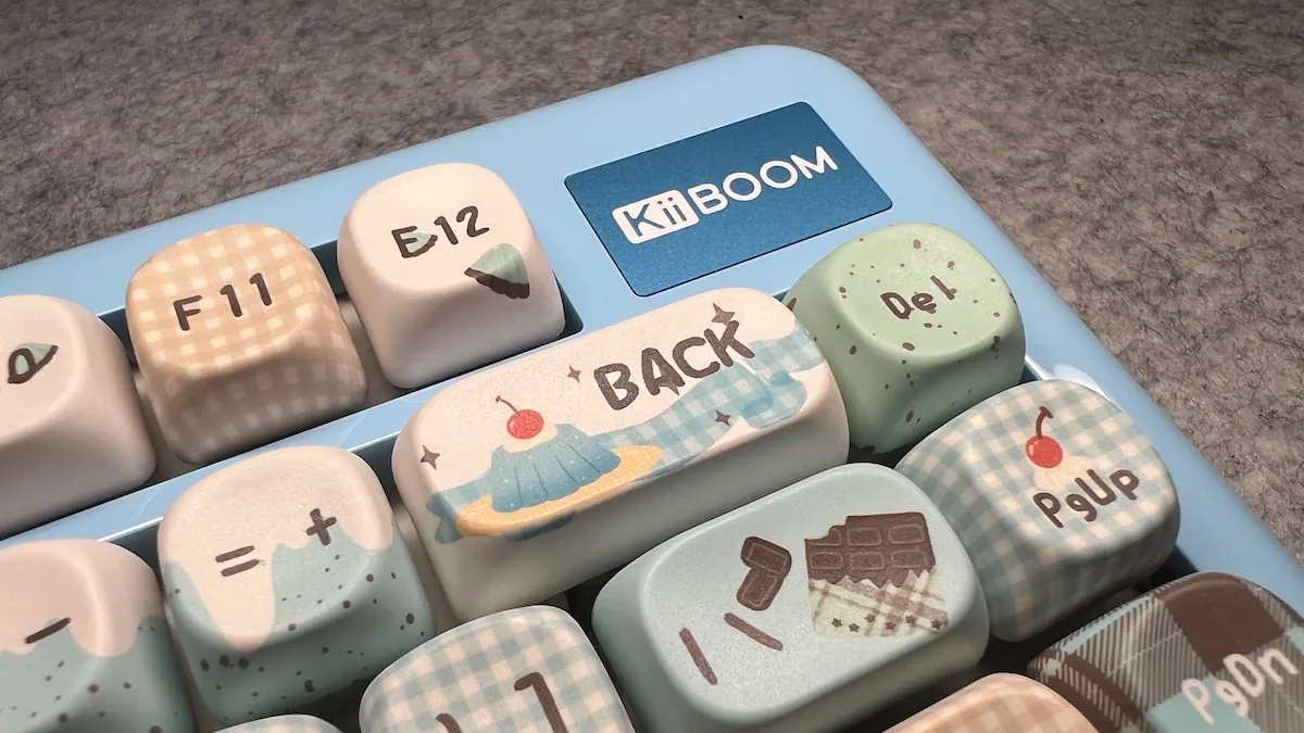 I keycaps presentano una grafica tematica curata e coerente, con legende ben leggibili e numerosi dettagli decorativi che aggiungono personalità. È uno stile che può non piacere a tutti, ma che risulta immediatamente riconoscibile e perfettamente in linea con il linguaggio visivo di KiiBoom.