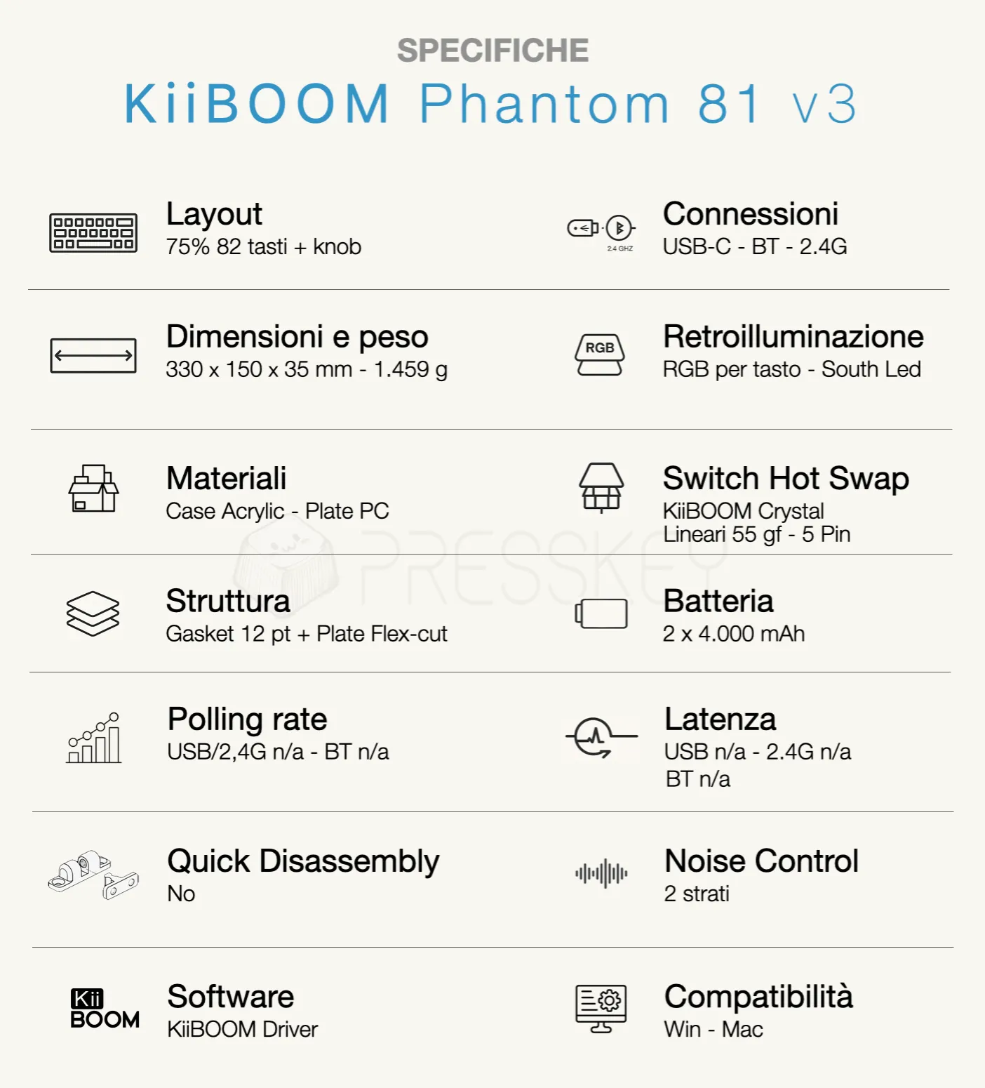La proposta di oggi arriva da Kiiboom, un marchio che ho iniziato a conoscere di recente e che, recensione dopo recensione, sto scoprendo essere molto più maturo e completo di quanto immaginassi. La tastiera di cui parliamo è la Phantom 81 v3: un modello che a prima vista potrebbe quasi passare inosservato, soprattutto se ci si ferma solo alla scheda tecnica. Eppure, è esattamente il caso in cui i numeri non bastano a raccontare la vera natura di un prodotto.
