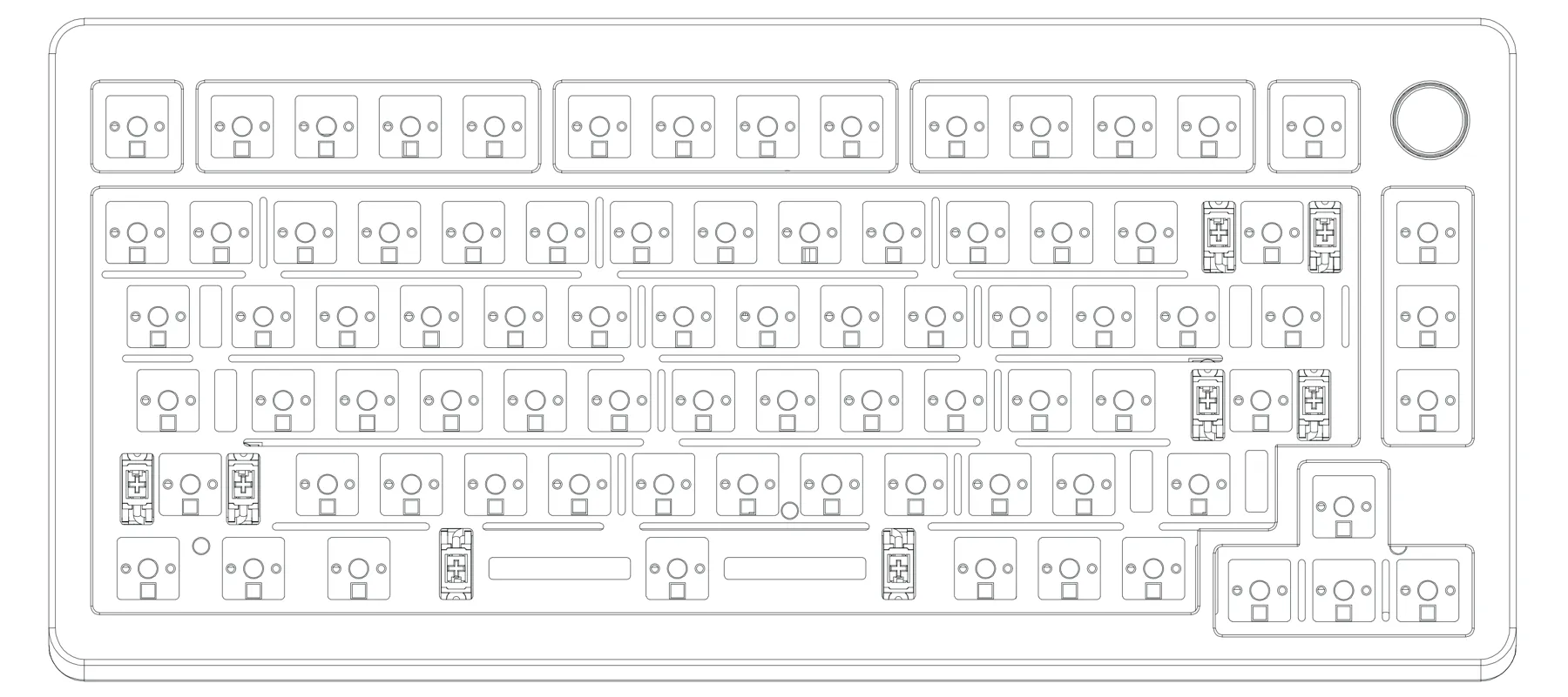 La Phantom 81 adotta un layout 75%, un formato che ormai conosciamo bene e che continua a dimostrarsi uno dei più versatili in circolazione: offre infatti un ottimo equilibrio tra compattezza e completezza grazie alla fila dei tasti funzione, i numeri, i tasti di navigazione essenziali e le frecce direzionali. Nonostante lo spazio ridotto rimane persino posto per integrare una manopola dedicata, senza ricorrere a stratagemmi o compromessi scomodi. Ritengo che il vero vantaggio di questo layout è che non costringe a ricordare layer secondari o combinazioni particolari per ottenere gli input desiderati, tutto ciò che serve è lì, immediatamente raggiungibile.