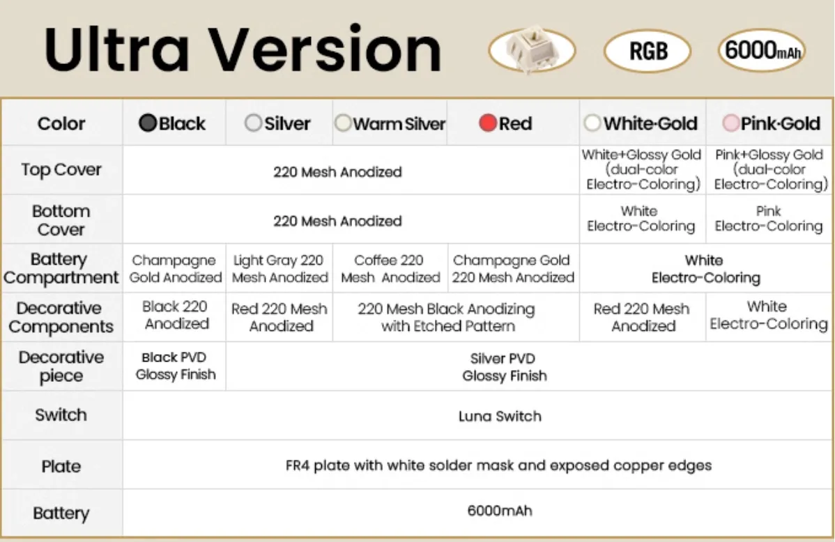 Le varianti Ultra sono chiaramente pensate per chi cerca una build più solida e visivamente elaborata, mentre le Lite mantengono il look generale della Zen65 ma con una costruzione più leggera e probabilmente più economica. Il fatto che entrambe condividano lo stesso design base permette però di scegliere in base alle preferenze personali, senza rinunciare all’estetica generale della tastiera.