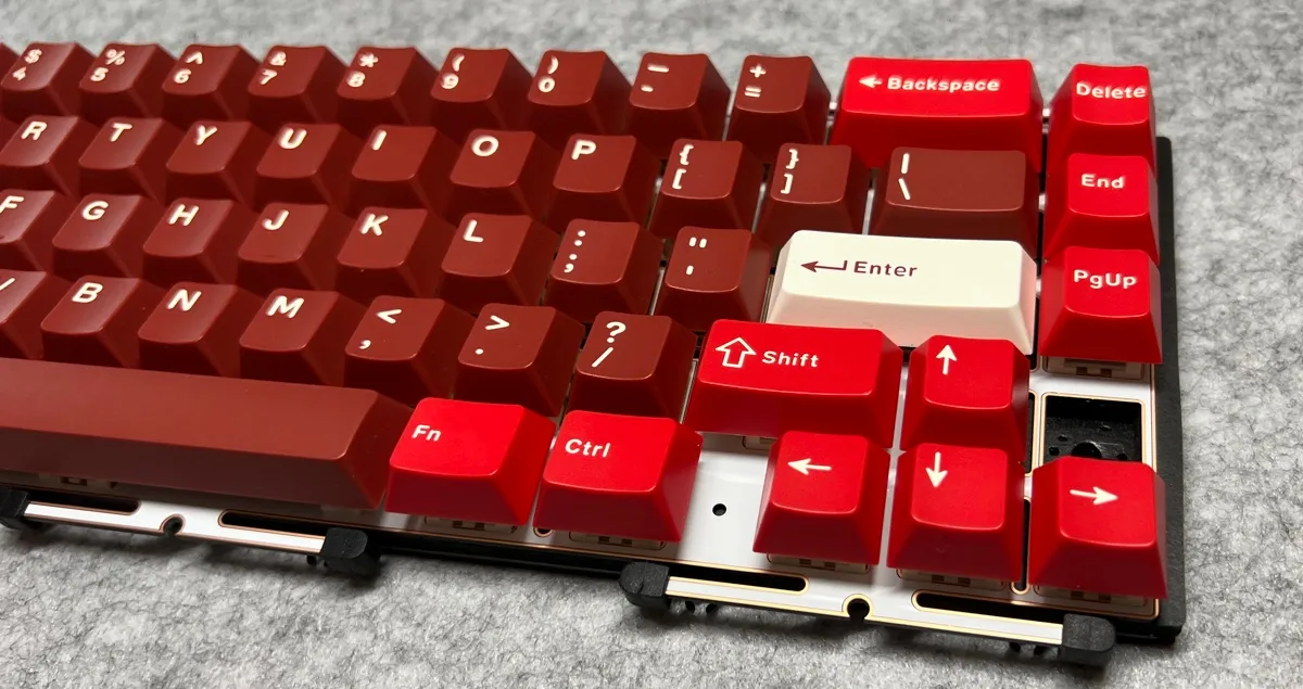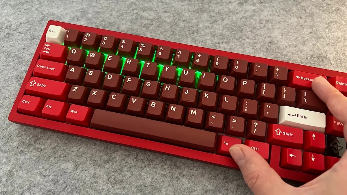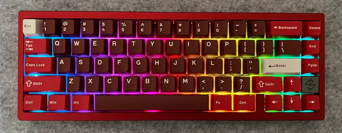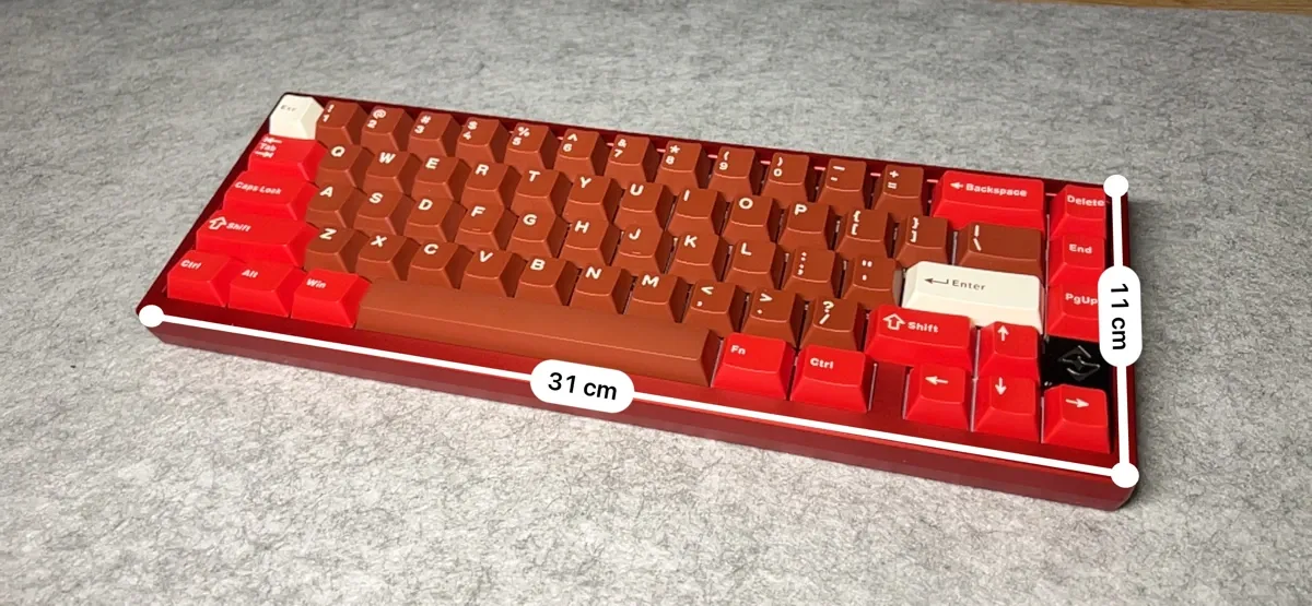 La disposizione è pulita, senza sovrastrutture: niente knob, nessuna barra spaziatrice split, semplicemente un 65% ben bilanciato che punta alla funzionalità e alla coerenza estetica. È un layout ormai molto amato perché trova un buon equilibrio tra ingombro ridotto e funzionalità, soprattutto per chi scrive spesso o usa scorciatoie da tastiera.