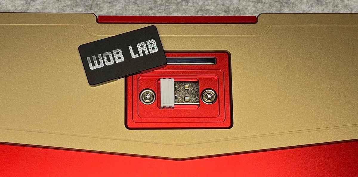 Il badge WOB LAB al centro è magnetico e integra l’alloggiamento del dongle 2.4G: un dettaglio tanto estetico quanto pratico, che rende il retro della tastiera qualcosa di più di un semplice fondo.