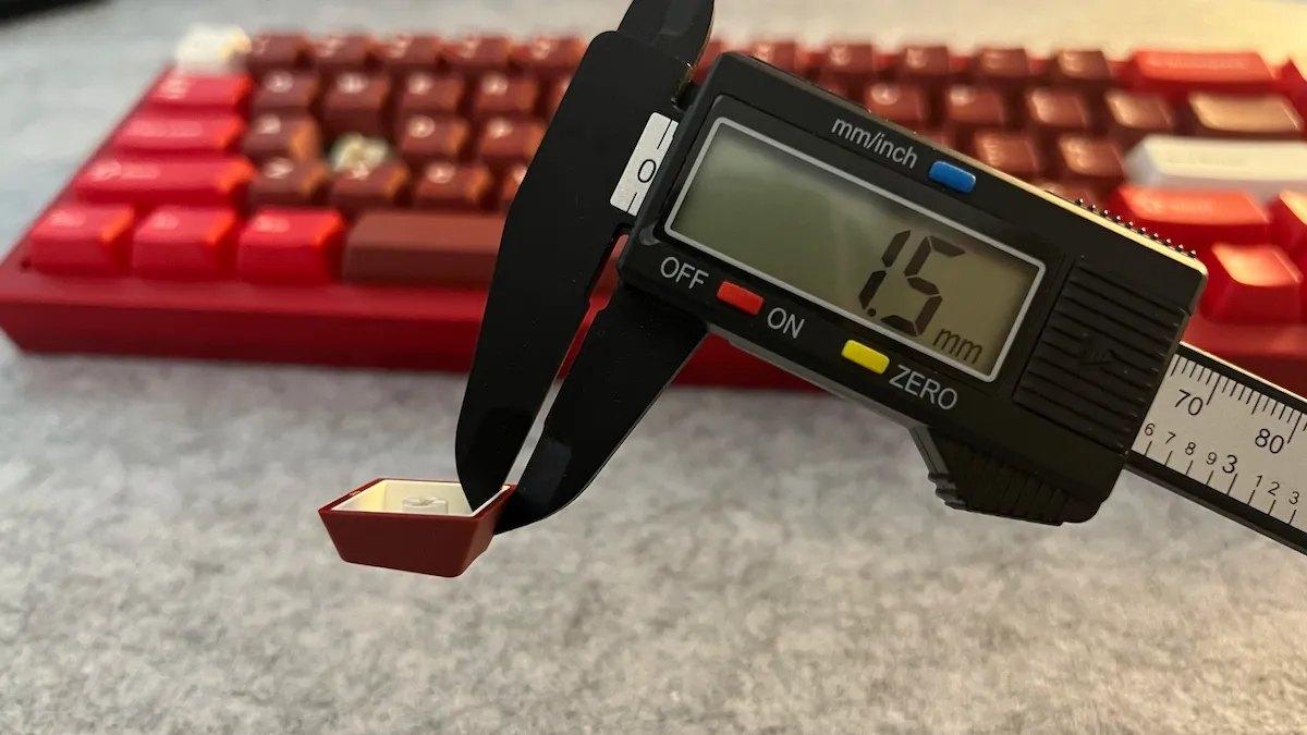 Foto porosità, segni della tecnica dualshot (a sinistra) e spessore del keycap (a destra).