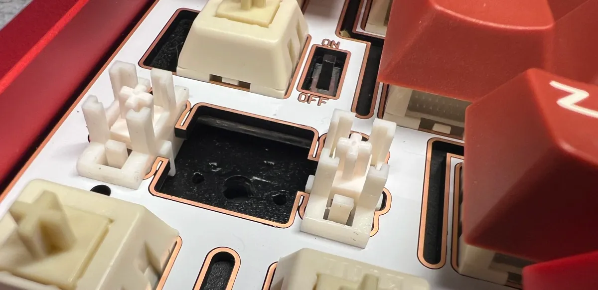 C’è però un aspetto da tenere in considerazione: la PCB non supporta stabilizzatori screw-in, né una possibile barra spaziatrice split, due opzioni che chi ha provato la Crush80 potrebbe aspettarsi. Non sono assenze “critiche”, soprattutto perché gli stabilizzatori montati di serie funzionano davvero bene, ma sarebbe stato interessante avere quella flessibilità in più.