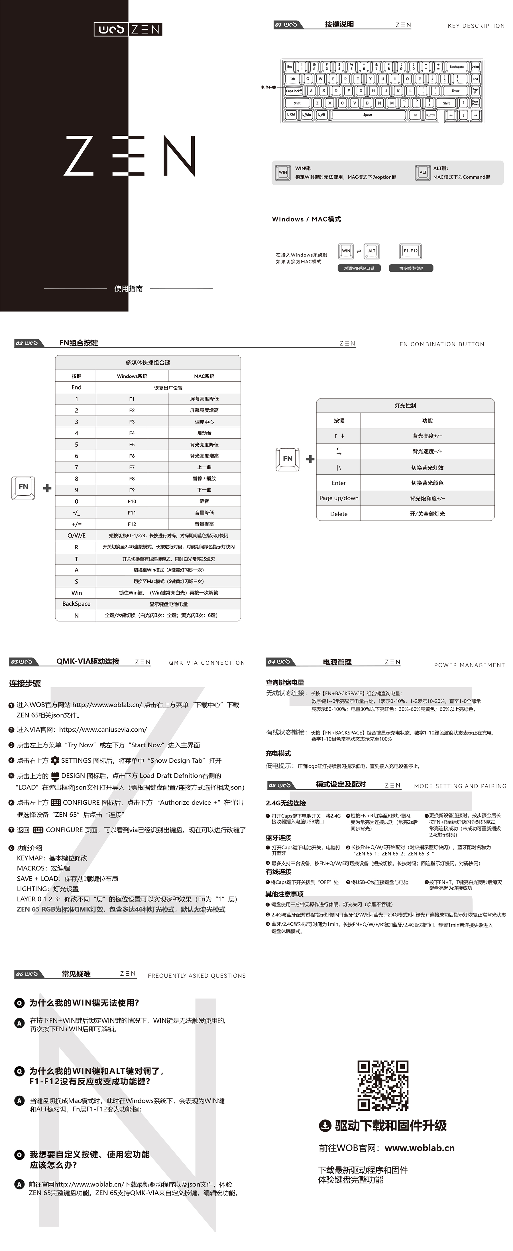 Una delle cose meno immediate, al momento, è reperire i manuali ufficiali della Zen65: sul sito Wobkey non risultano disponibili al download. Per semplificare la ricerca ho raccolto qui sotto tutti i link utili, inclusi i manuali originali in inglese e in cinese, così da averli sempre a portata di mano. Per comodità inserisco anche il download del file JSON necessario per far riconoscere la tastiera a VIA.