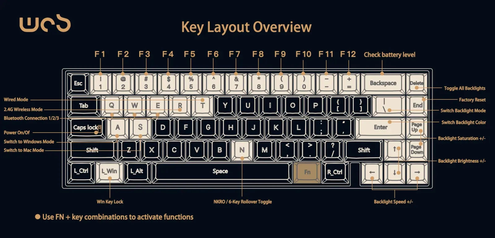 Una tastiera compatta deve saper trovare il giusto equilibrio tra praticità e comfort, e la Zen65, anche in questa versione Limited Edition Copper, continua a colpire nel segno. Il layout 65% resta uno dei più riusciti proprio perché riesce a ridurre l’ingombro senza compromettere l’esperienza d’uso: la presenza delle frecce direzionali e della colonna laterale con Delete, End, PageUp e PageDown permette di mantenere le proprie abitudini senza dover ricorrere continuamente a combinazioni di tasti.