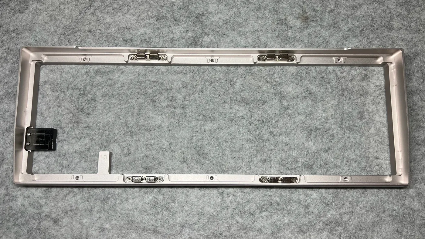La configurazione di iniziale che ho scelto durante l'assemblaggio si affida a un sistema gasket in silicone che avvolge le estremità del plate, donando una sospensione elastica che lavora in compressione durante la digitazione e che restituisce un equilibrio molto ben calibrato. Quando si decide di intervenire in modo più diretto sul comportamento della tastiera, il passaggio al top-mount modifica in maniera evidente la risposta complessiva, poiché il plate viene fissato direttamente al case superiore tramite viti e rondelle, riducendo di fatto interamente la componente elastica e restituendo una digitazione più secca, con una maggiore percezione del fondo corsa.