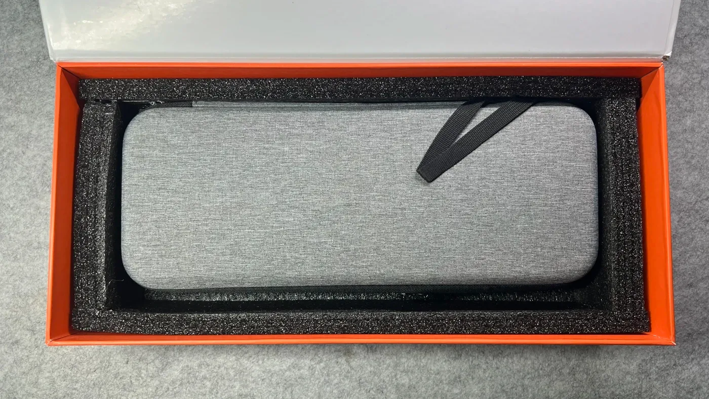 Una volta aperta, si viene accolti da una scatola accessori bianca, rifinita con dettagli dorati, che rafforza ulteriormente l’identità premium del prodotto sotto cui trova posto la tastiera, racchiusa nella sua caratteristica custodia rigida con chiusura a zip.