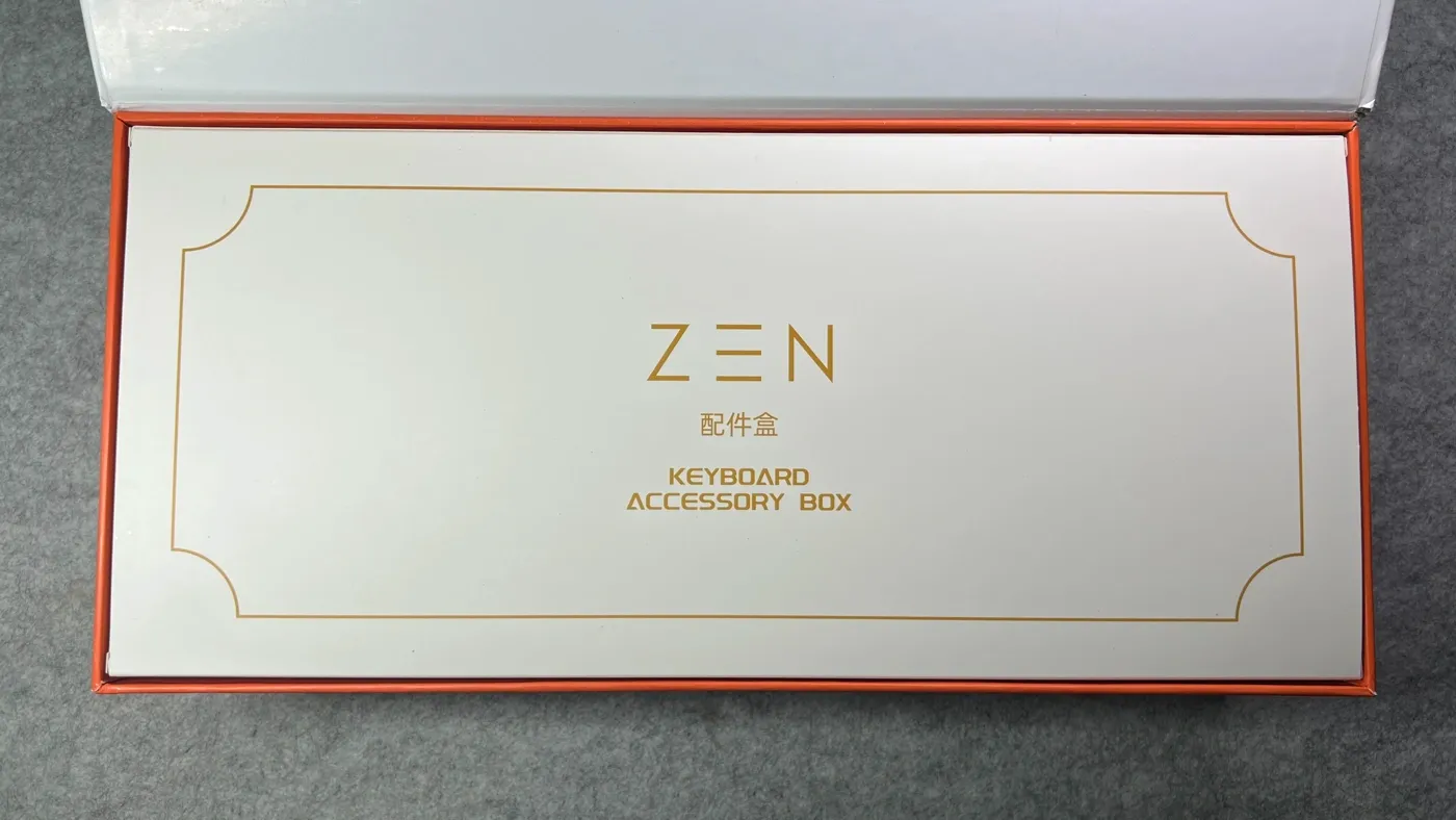 La confezione della Wobkey Zen 65 Copper comunica con chiarezza il posizionamento del prodotto, allontanandosi dal classico approccio “commerciale” per abbracciare un’estetica più caratteristica, adatta con la natura limited della tastiera. La scatola si presenta esternamente con una finitura chiara con una trama ondulata, al centro della quale trova posto il logo ZEN. L’interno, invece, si apre su un cofanetto di colore arancione che richiama, in modo sottile l’essenza del materiale protagonista del progetto. La struttura della confezione è quella di un box rigido con chiusura magnetica laterale: l’apertura a cofanetto risulta estremamente piacevole, contribuendo a rendere l’unboxing parte dell’esperienza.