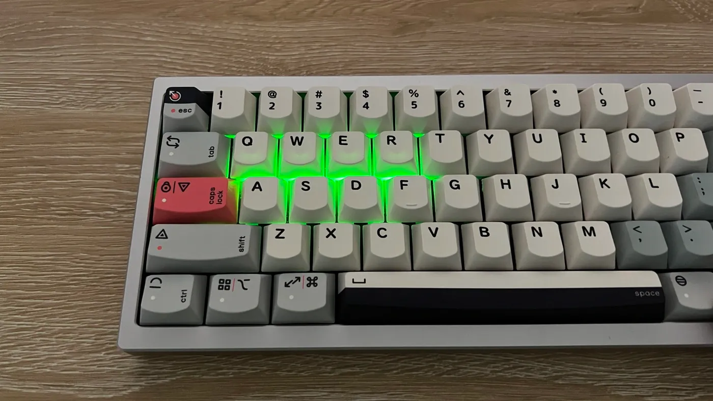 La presenza di LED è quindi ridotta al minimo indispensabile e limitata a due funzioni specifiche. Il primo è il classico indicatore del Caps Lock, mentre il secondo è un sistema di cinque LED integrati sotto i tasti dalla Q alla T, che si attivano tramite la combinazione a Fn + Backspace, per mostrare lo stato di carica della batteria. Si tratta di una soluzione semplice ma efficace, che evita l’introduzione di elementi visivi superflui e mantiene la tastiera focalizzata su ciò che realmente conta. È una scelta che potrebbe non soddisfare chi è abituato a tastiere ricche di effetti luminosi, ma che si inserisce in modo naturale in un prodotto che punta a offrire un’esperienza più essenziale e consapevole.