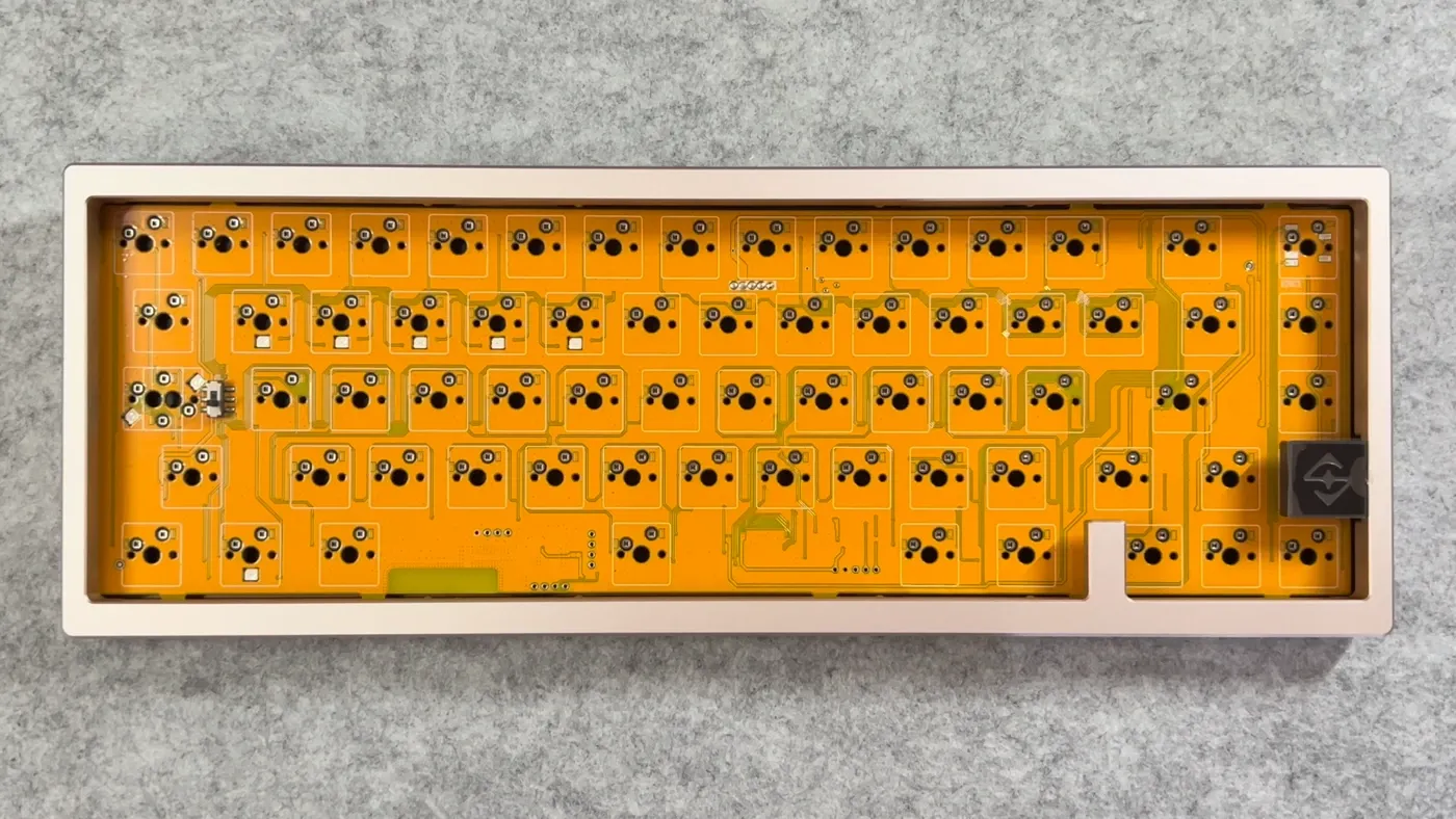 Osservando la Zen65 Copper nel suo insieme, emerge una scelta progettuale piuttosto chiara, che definisce il comportamento della tastiera ancora prima di qualsiasi intervento sul mounting: PCB e plate si muovono entrambi nella direzione della rigidità, contribuendo a costruire una base poco incline alla flessione. Il PCB, con uno spessore di 1,6 mm e privo di flex cut, rinuncia volutamente a quelle soluzioni che negli ultimi anni sono state introdotte per aumentare l’elasticità della struttura, privilegiando invece una risposta più stabile; a questo si affianca un plate in metallo, che rafforza ulteriormente questa impostazione. È una scelta che, inevitabilmente, orienta il comportamento della tastiera verso una digitazione più controllata, soprattutto se considerata insieme alla massa importante della base in rame, che tende a smorzare ogni possibile vibrazione sonora. In questo senso, la presenza di diverse configurazioni gasket e delle opzioni di mounting rappresenta più uno strumento di rifinitura che una vera trasformazione del feeling: è possibile intervenire sulla risposta, renderla leggermente più morbida o più diretta, ma senza di fatto uscire da un’impostazione di fondo che resta decisamente solida.