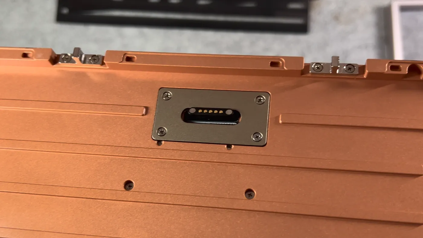 A questa si affianca un top in alluminio, che introduce un contrasto interessante visivo e materico: da una parte la densità del rame, dall’altra una superficie più neutra, satinata, capace di bilanciare l’insieme. La finitura scelta da Wobkey prende il nome di Warm Silver, una tonalità che si discosta dal classico argento freddo per avvicinarsi a sfumature più calde, con leggere note champagne che, per molti, richiameranno il colore Galassia adottato da Apple sugli attuali MacBook Air.