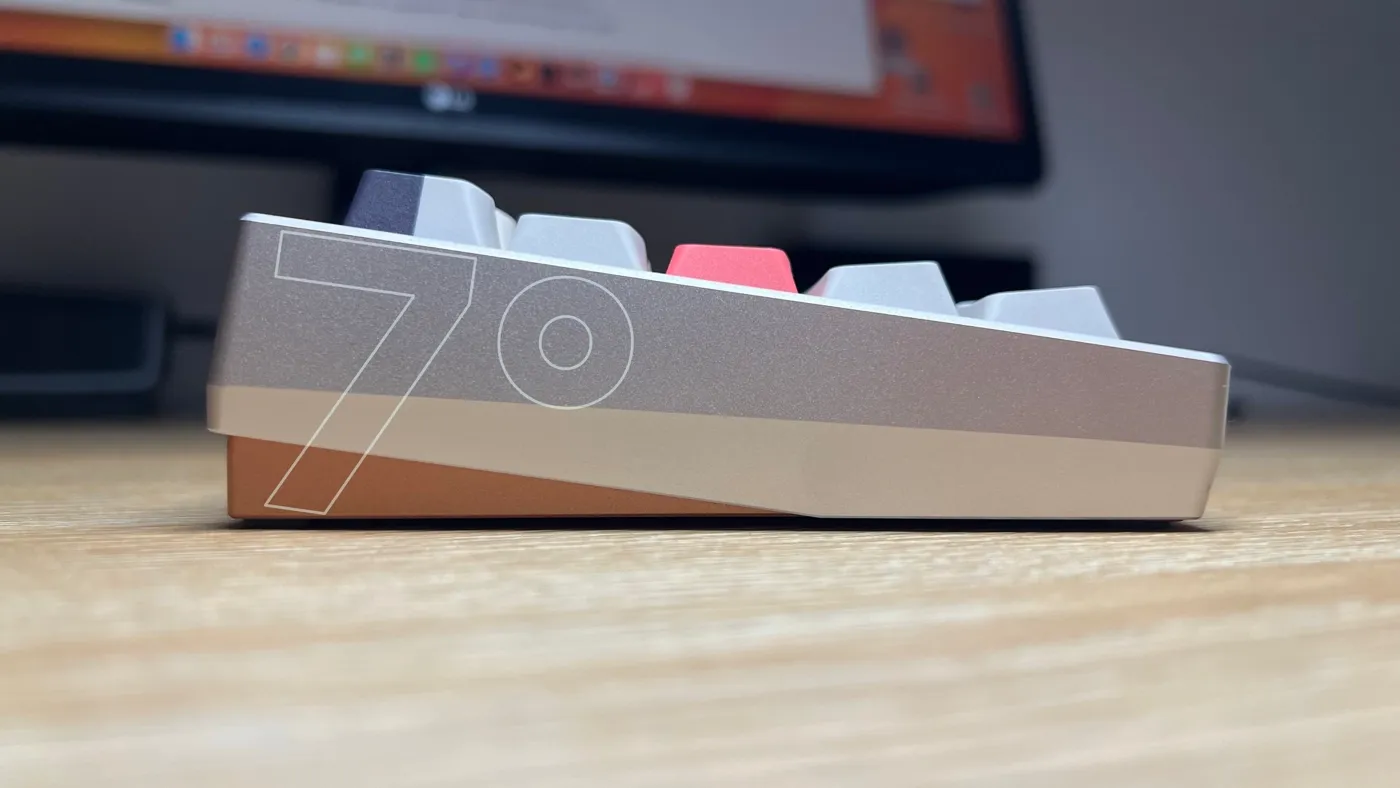 La cosa più interessante è come la base in rame influisca su questo tipo di suono: invece di smorzarlo o appesantirlo, sembra quasi amplificarne la percezione, rendendolo più presente, più leggibile, senza mai diventare fastidioso o metallico. È un equilibrio difficile da ottenere, ma qui funziona sorprendentemente bene. Anche dal punto di vista del feeling, la combinazione è particolarmente riuscita: i 28g degli switch rendono la digitazione estremamente leggera, quasi scorrevole, con i tasti che sembrano “scivolare” sotto le dita senza opporre resistenza, accompagnando ogni pressione con un suono nitido e coerente.