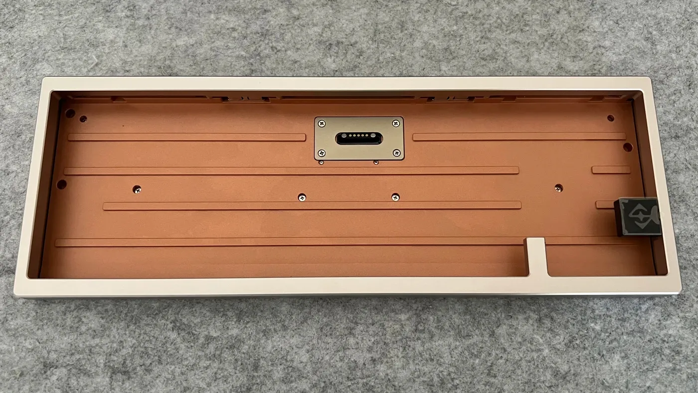 Una delle parti più interessanti della Zen 65 Copper è proprio quella che non si vede: l’interno. È qui che il progetto Zen65 mostra tutta la sua maturità, combinando accessibilità, modularità e una struttura pensata per essere modificata, smontata e reinterpretata nel tempo. Ritroviamo anche in questa versione il sistema di apertura toolless con ball-catch, una soluzione ormai distintiva del progetto Wobkey: una sfera caricata a molla che si aggancia agli incavi del bottom case, permettendo di separare le due metà con un semplice gesto. L’apertura è netta, precisa, e soprattutto pratica — un sistema che continua a distinguersi per comodità e solidità, anche in un contesto più “estremo” come quello della Copper.