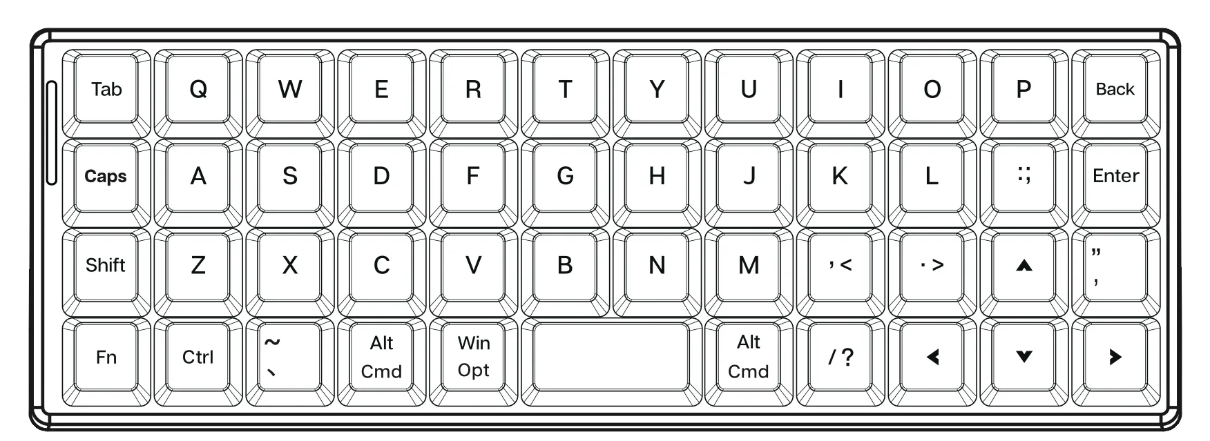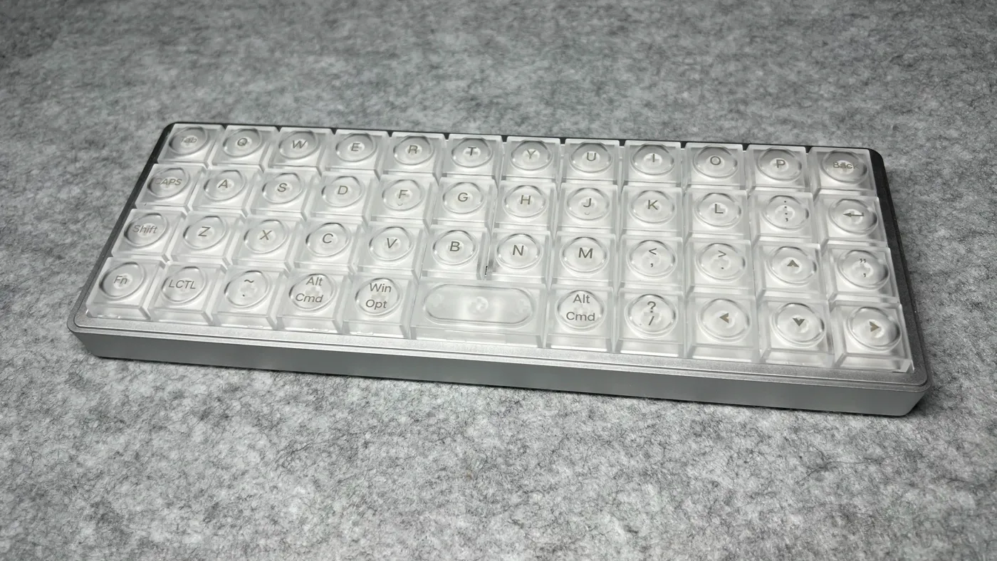 Il layout della Epomaker Luma40 è senza dubbio uno degli aspetti che più ne definiscono l’esperienza d’uso, perché puoi passare da una tastiera full-size ad una TKL o 75% ma sceglierne una con layout 40% significa accettare fin da subito delle rinunce sul piano dell’immediatezza per avere in cambio il minimo ingombro possibile sulla scrivania e in mobilità. La presenza di soli 47 tasti obbliga infatti a passare attraverso layer e combinazioni per richiamare numeri, simboli e funzioni secondarie, ed è una cosa che si avverte subito, soprattutto se si arriva da layout più tradizionali.