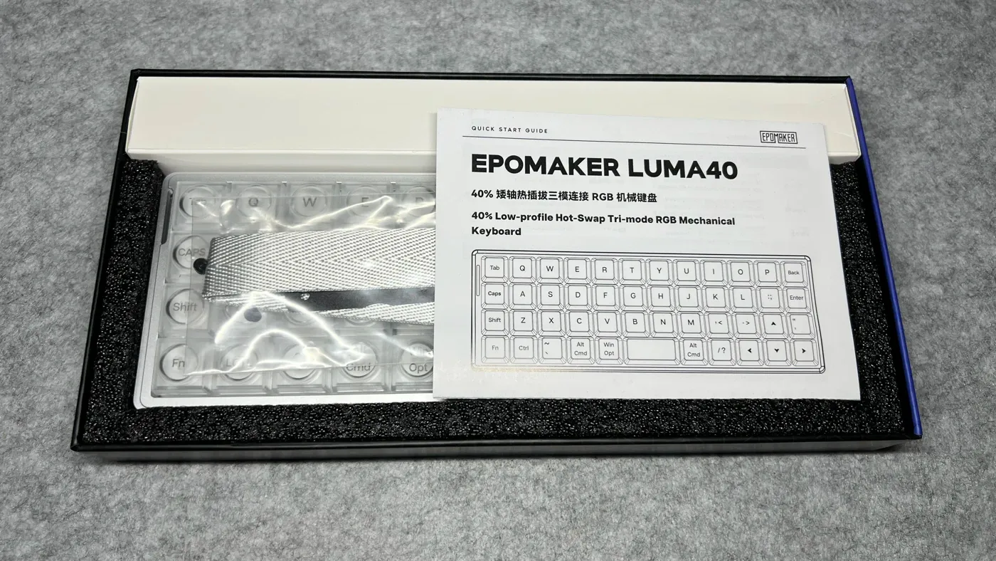 Aprendo la confezione della Epomaker Luma40 si ha subito la sensazione di trovarsi davanti a un prodotto curato, con un packaging che segue quella linea ormai ben riconoscibile del brand, pulita e ordinata, ma comunque in grado di trasmettere una certa attenzione ai dettagli già dal primo contatto.