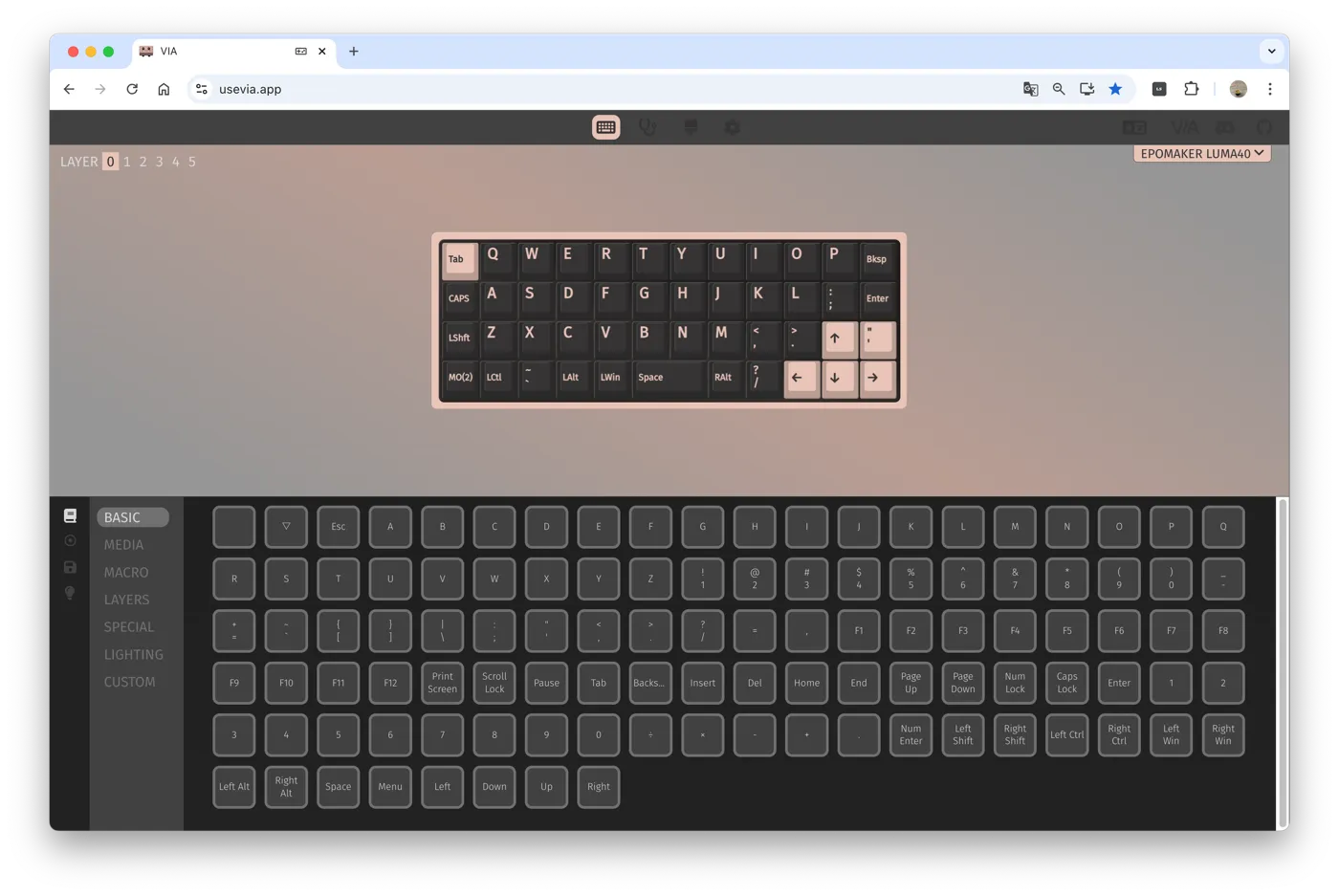 La compatibilità con VIA è uno degli aspetti che ho apprezzato di più della Epomaker Luma40, perché su una tastiera così particolare poter intervenire in modo semplice sui layer cambia il modo in cui la si usa. Nel mio caso è stata soprattutto la rapidità con cui si possono riassegnare funzioni e combinazioni a fare la differenza, perché permette di adattare la tastiera alle proprie abitudini senza dover passare attraverso procedure inutilmente complicate.
