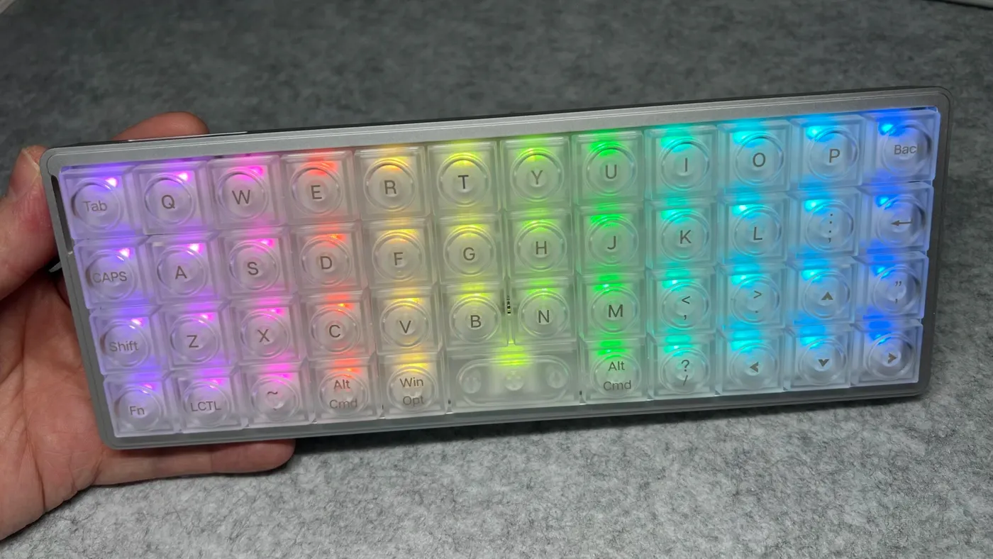 Dal punto di vista del design, la Epomaker Luma40 ha un aspetto molto particolare che non dipende solo dalle dimensioni compatte o dal formato 40%, quanto per il layout ortolineare, i tasti disposti in una griglia perfettamente allineata, le danno infatti un colpo d’occhio diverso dal solito e la fanno sembrare più compatta di quanto non sia già.